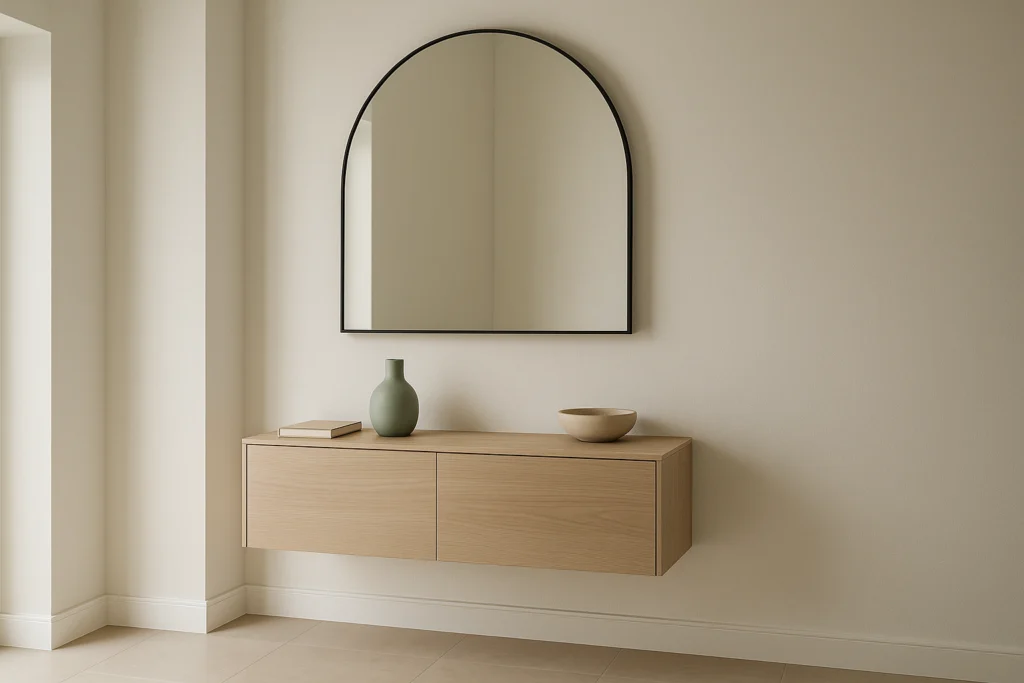 Les miroirs en demi-cercle apportent à votre intérieur une touche à la fois pratique et élégante. Leur forme distinctive, avec une partie supérieure arrondie et une base droite, crée un effet graphique subtil qui s’intègre harmonieusement à tous les styles. Que vous ayez une décoration moderne ou plus classique, un miroir en demi-cercle crée immédiatement un point focal. De plus, les miroirs diffusent la lumière, et un modèle en demi-cercle donnera une impression d’espace et de luminosité à votre pièce. Voici tout ce que vous devez savoir: des matériaux aux avantages en passant par des conseils et idées astucieux pour l’installation.