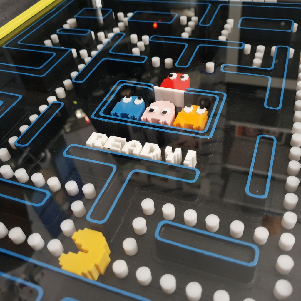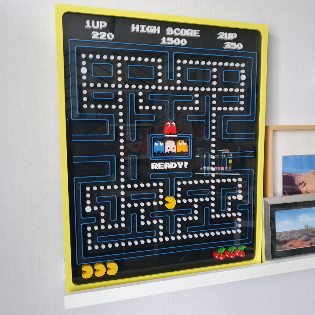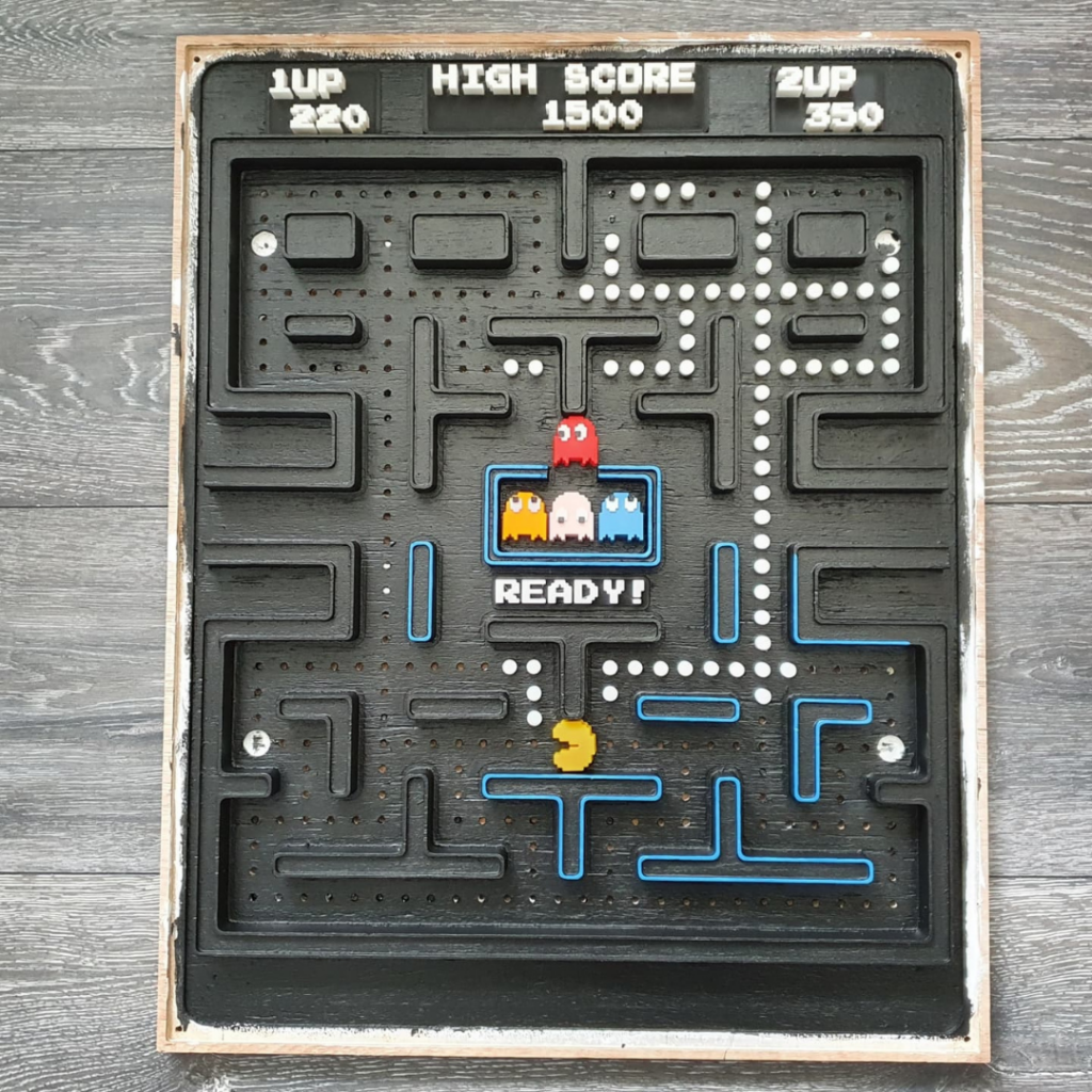 Franklin a construit un diorama qui donne vie au plateau de jeu de Pac-Man classique. Pour le plateau et le cadre, il a utilisé du contreplaqué découpé à l’aide d’une machine CNC et a ajouté des figurines détaillées qu’il a imprimées avec une imprimante 3D. La finition avec de la peinture dans les couleurs authentiques de Pac-Man et une plaque de plexiglass de protection complète l’ensemble. Franklin : “Je suis très satisfait du résultat final !”