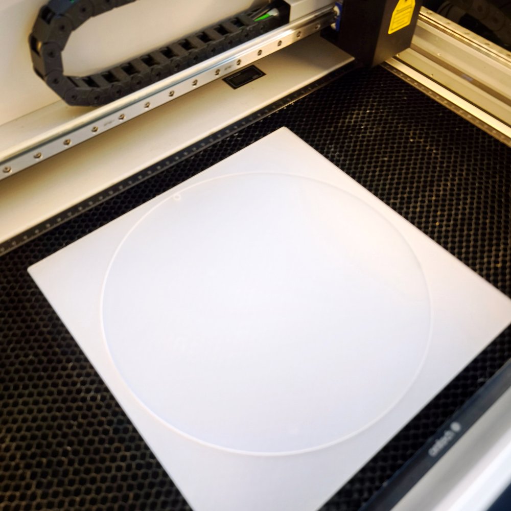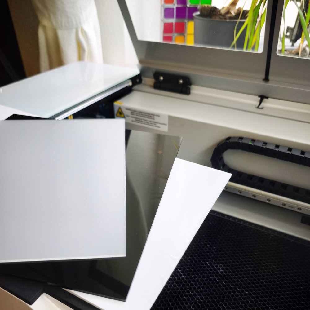 « Il faut toujours recouvrir le verre acrylique noir de ruban adhésif avant de le découper. Cela évite les traces disgracieuses sur la surface. Il suffit d’essayer ! Il y a toujours plusieurs façons d’obtenir le même résultat. Vous n’avez pas nécessairement besoin d’un laser. Vous pouvez également le faire à la main ou à l’aide d’une scie à ruban. Utilisez une bonne colle pour verre acrylique. Cela vous évitera bien des problèmes. »