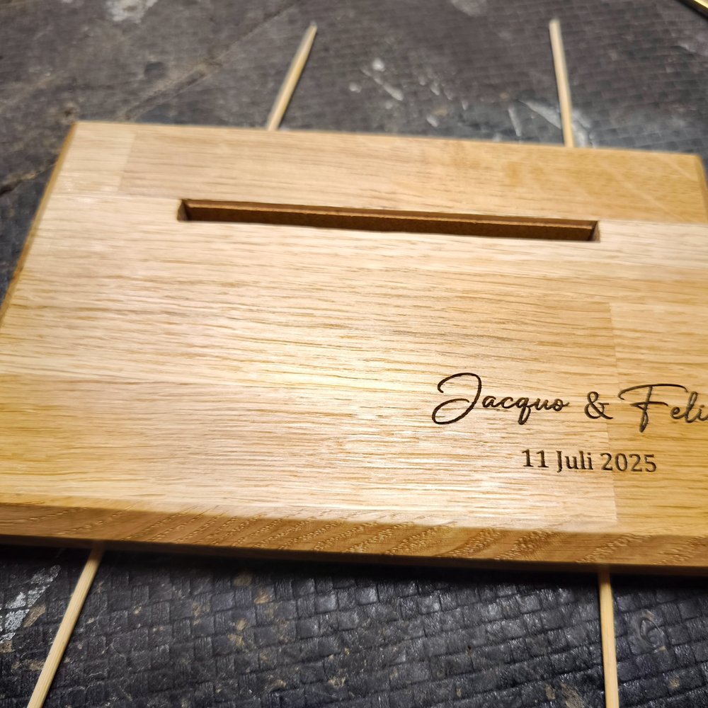 Pour concevoir le support, découpez le bois de chêne dans la forme souhaitée, limez et poncez pour une finition lisse, puis terminez par une gravure personnalisée avec des outils adaptés, comme un laser.