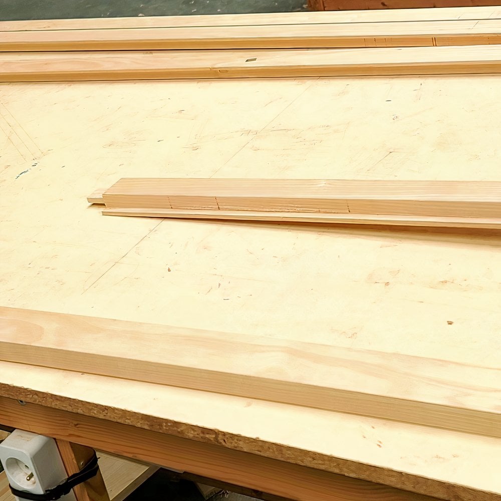 « Une machine-outil simple suffit, ou alors faites appel à un menuisier pour le ponçage. Vous pouvez aussi acheter du bois déjà poncé. Les joints tenon et mortaise peuvent être réalisés à l’aide d’outils électriques simples : une scie à onglet pour les tenons, une perceuse ou une fraiseuse pour les mortaises. Ensuite, il ne reste qu’à coller, serrer et poncer. Les rails et roulettes se trouvent facilement en ligne ou dans les magasins spécialisés. Cela demande un peu de temps et d’efforts, mais nous sommes ravis du résultat final. »