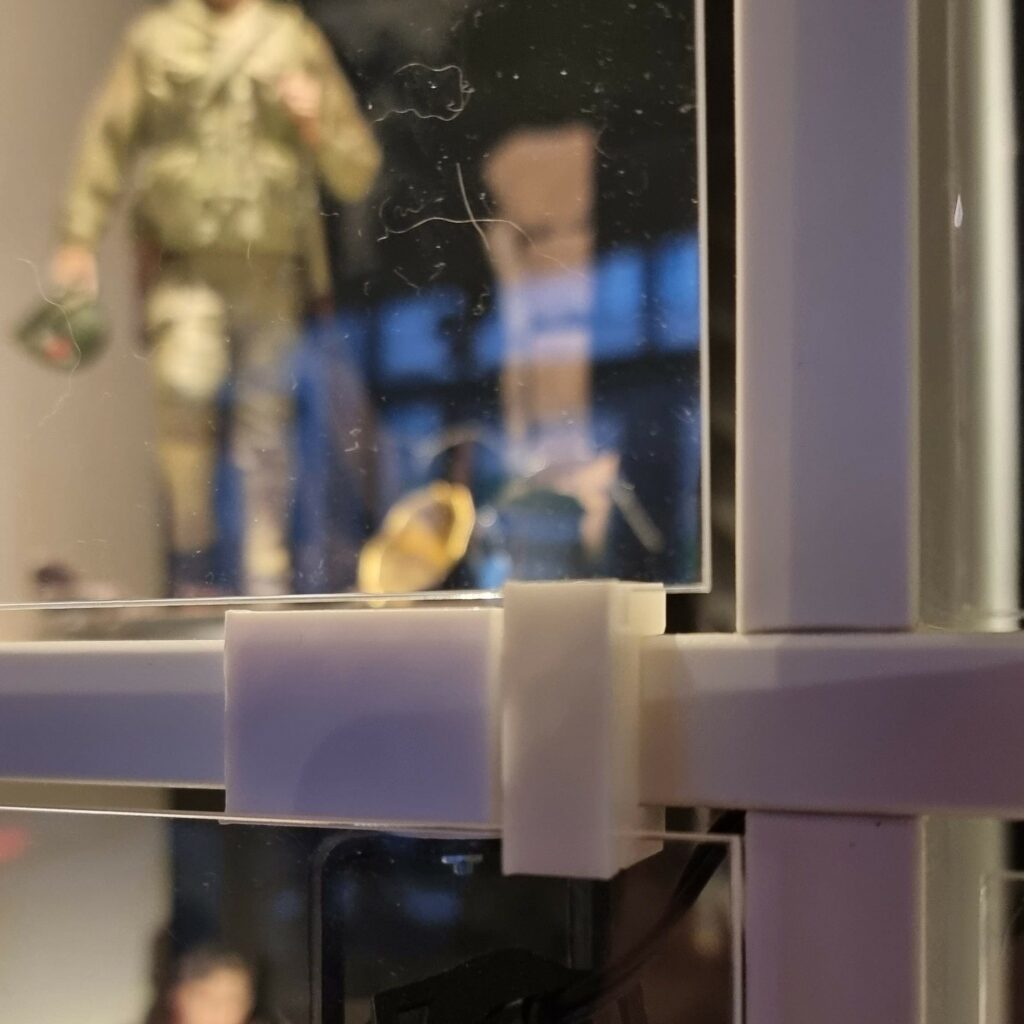 Henri a fabriqué une vitrine solide à partir d’une étagère Kallax d’IKEA et de plexiglass transparent. Il a conçu un système de fixation pour l’armoire et l’a imprimé avec une imprimante 3D, de façon à ce que les plaques de plexiglass découpées sur mesure s’adaptent parfaitement. Le résultat est une belle barrière protectrice pour sa collection. Henri : « Un projet amusant avec beaucoup de résultats ! Je suis content. ;) »