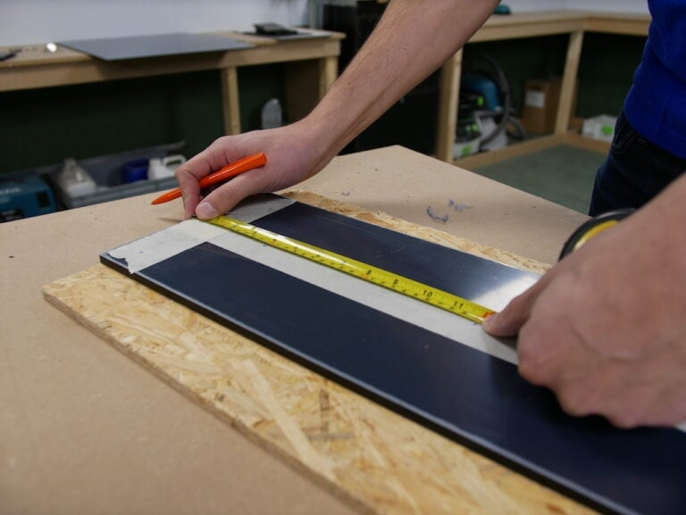 Pour ce projet, nous utilisons du plexiglass noir de 8 mm d’épaisseur. Mais n’hésite pas à choisir ta couleur préférée, il y a aussi du plexiglass blanc ou du plexiglass coloré. Choisis bien une plaque avec une épaisseur de 8 mm. Cela garantit la stabilité de ta penderie.