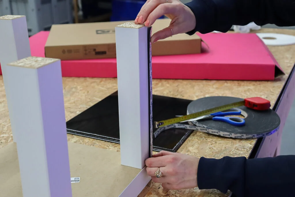 • Fixez-les le long des pieds de la table, de haut en bas en laissant une petite marge. Vous obtenez ainsi une fixation solide et discrète.
