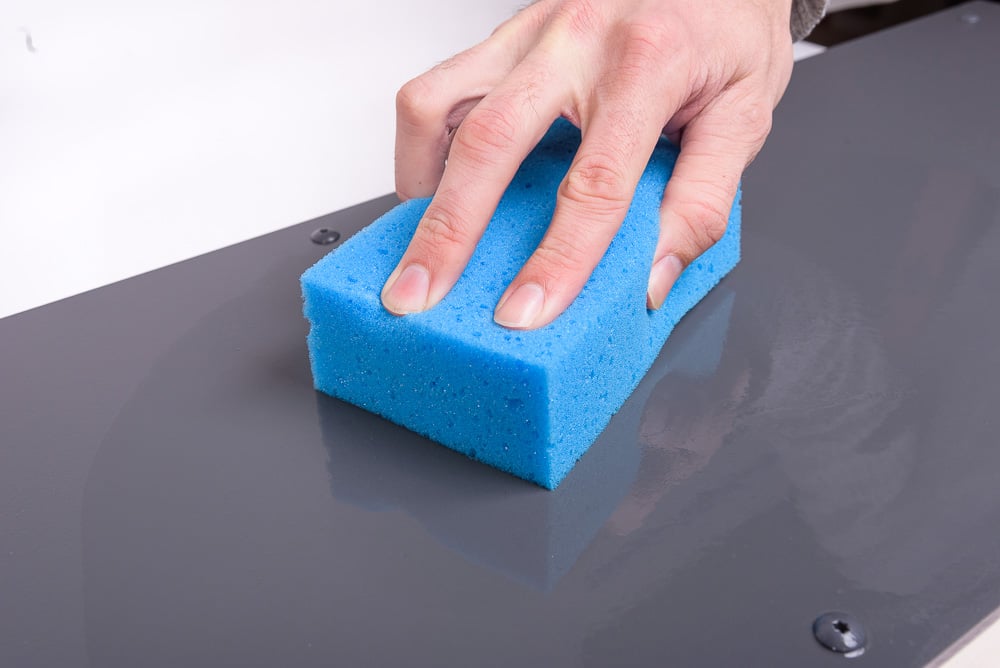 Utilisez une éponge ou un chiffon doux pour appliquer la solution nettoyante sur la surface Trespa. Frottez l’ensemble de la surface en douceur pour enlever saleté et poussière sans rayer.